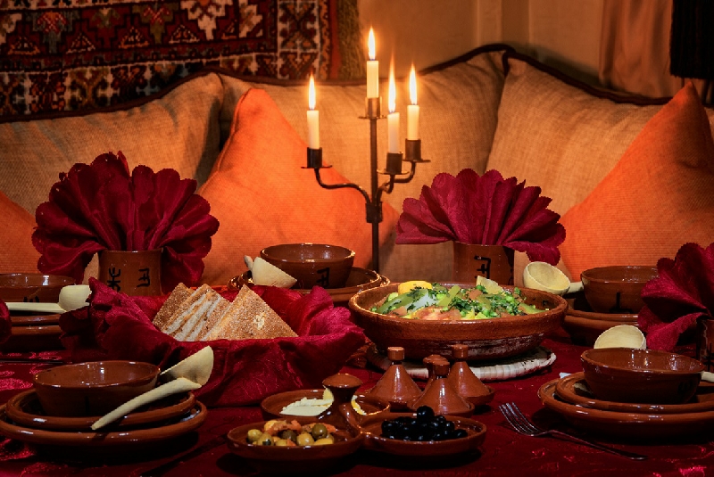 At Riad Atlas Prestige serves a daily continental breakfast. And dinner, can prepare, on request, Moroccan specialties to be enjoyed in the dining room .